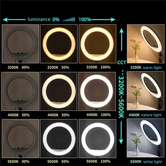 14-Inch Selfie Ring Light with Tripod Stand – Adjustable Photographic Lamp with 3 Mobile Holders