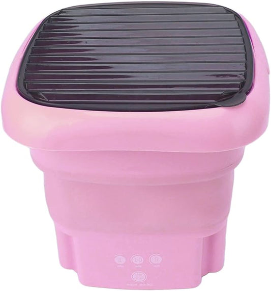 Portable Washing Machine | Mini Foldable Bucket Washer & Dryer Combo | Small Washer with Soft Spin Dry & Drainage Pipe for Underwear, Socks, Baby Clothes, Apartment, Dorm, Laundry (Pink)