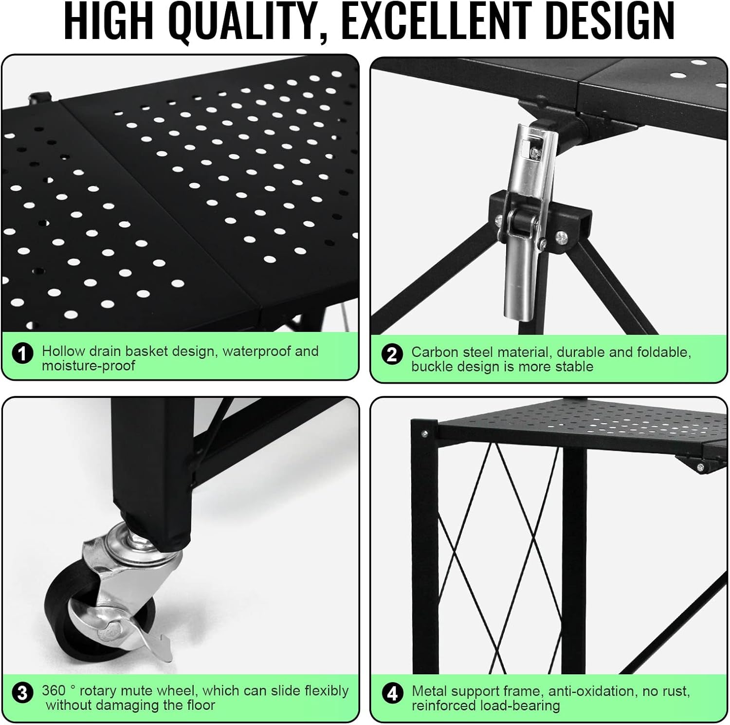 4-Layer White Mobile Folding Kitchen Storage Rack – No-Installation, Thickened Multi-Purpose Shelf (Black)
