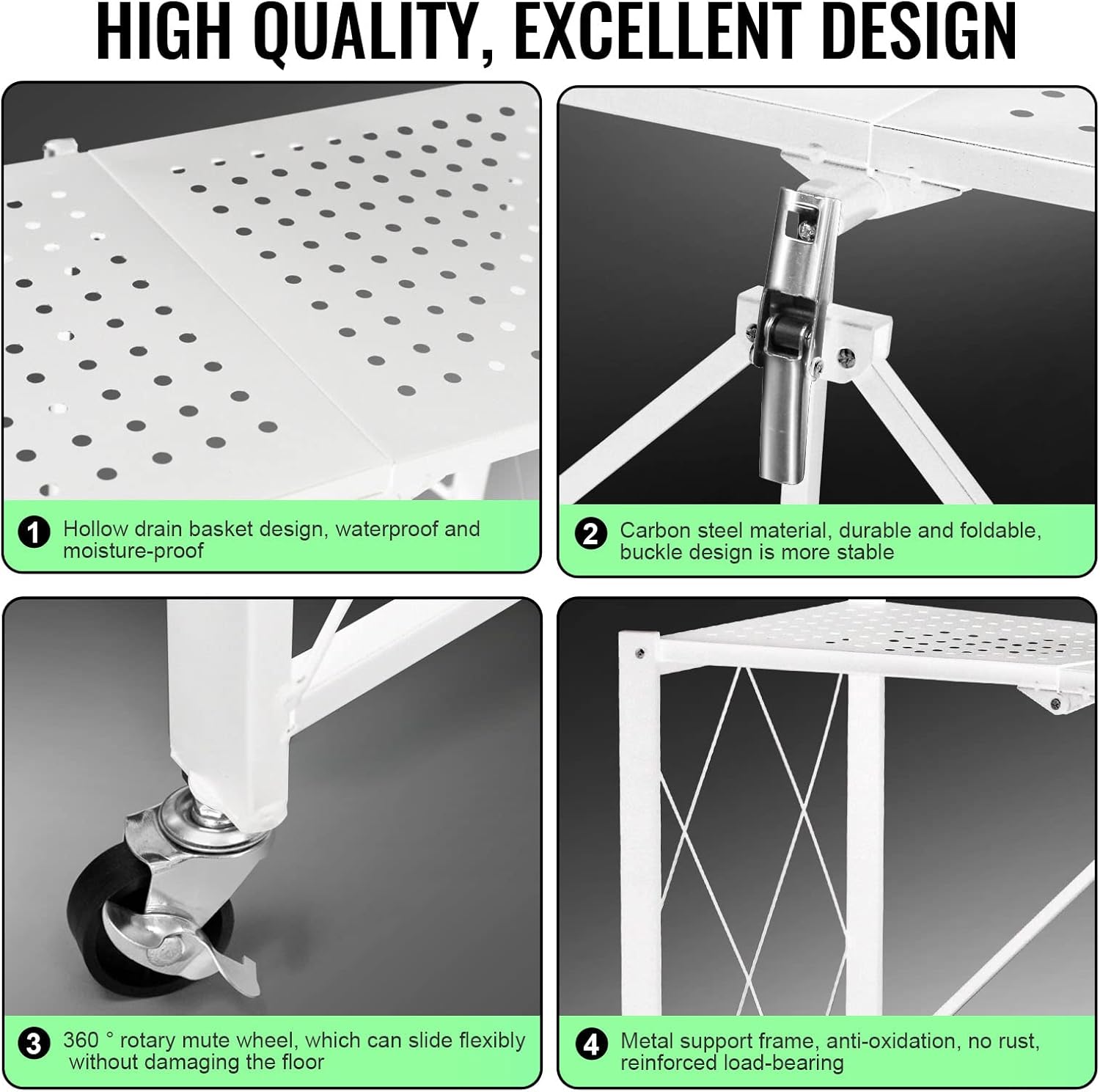 4-Layer White Mobile Folding Kitchen Storage Rack – No-Installation, Thickened Multi-Purpose Shelf (White)