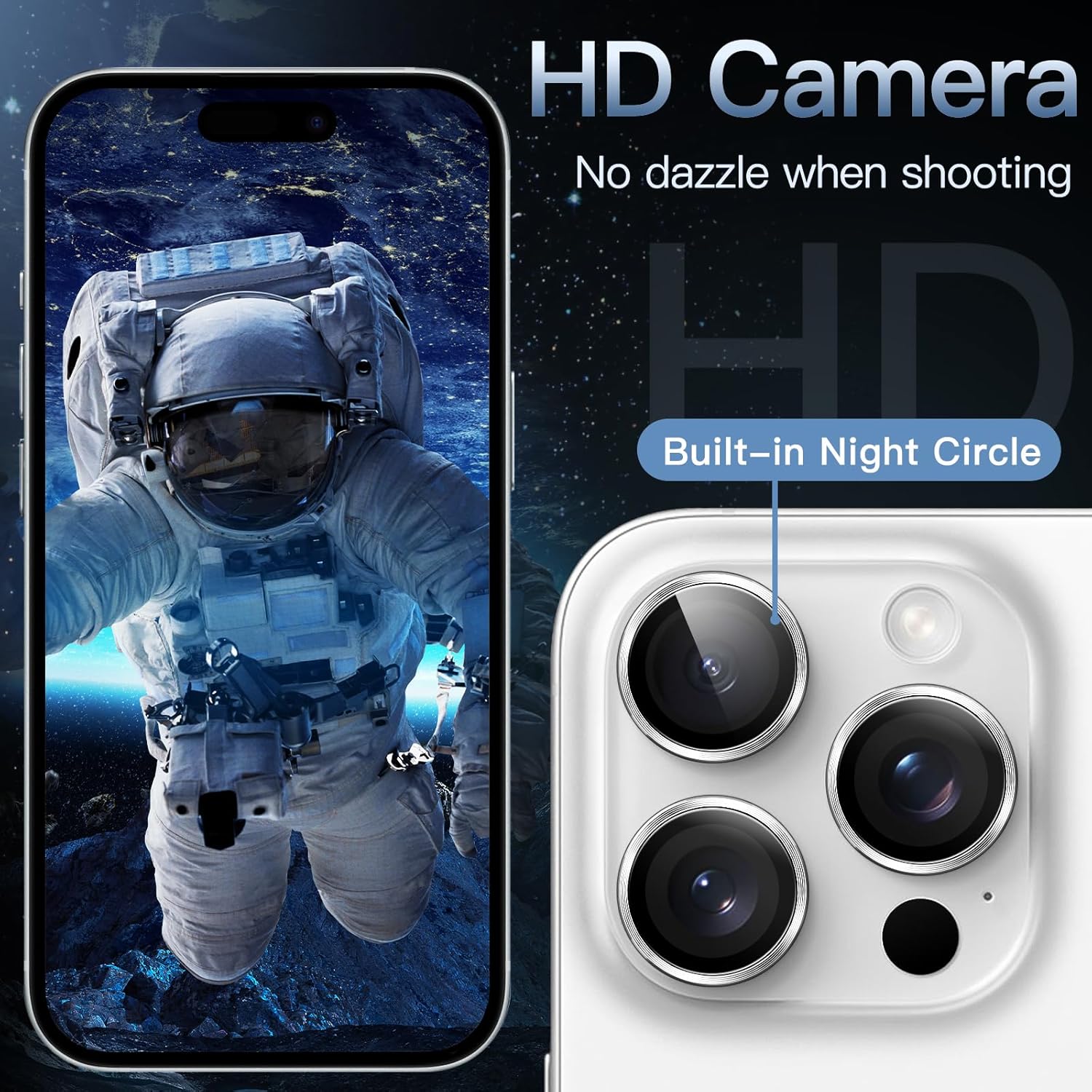 Ensure your iPhone 16 or 17 Pro Max remains in pristine condition with this premium 3-pack camera lens protector set. Designed specifically for the advanced camera systems of these models, each protector is crafted from 9H hardness tempered glass—providing exceptional resistance against scratches, drops, and impacts. The precision-engineered design ensures perfect alignment with all camera lenses, LiDAR sensors, and flash modules, maintaining original photo and video quality without distortion, lens flare, or interference with autofocus capabilities.The silver titanium aluminum alloy ring adds a layer of robust protection and a sleek, modern aesthetic that complements your device's design. With an ultra-thin 0.3mm profile, the protector integrates seamlessly without adding bulk, while the oleophobic coating repels fingerprints, oil, and smudges for a consistently clear surface. Installation is effortless with the included alignment frame and cleaning kit, allowing for bubble-free application in seconds. Whether you’re capturing memories or using your phone daily, this protector offers peace of mind and preserves the integrity of your iPhone’s sophisticated camera system.7 Bullet Points:9H Tempered Glass - Superior scratch and impact resistancePrecision Fit - Designed for iPhone 16/17 Pro Max camera modulesSilver Titanium Alloy Ring - Enhances durability and styleOleophobic Coating - Repels fingerprints and smudgesUltra-Thin Design - Maintains sleek device profile3-Pack Bundle - Includes multiple protectors for long-term useEasy Installation - Alignment frame ensures perfect application10 Product Keywords:iPhone 16 Pro Max camera protectoriPhone 17 Pro Max lens cover9H tempered glass protectorSilver titanium alloy camera ringAnti-scratch lens protectorHD camera coveriPhone Pro Max camera shieldLens protector with alloy ringMulti-pack lens protectorsScratch-resistant camera cover